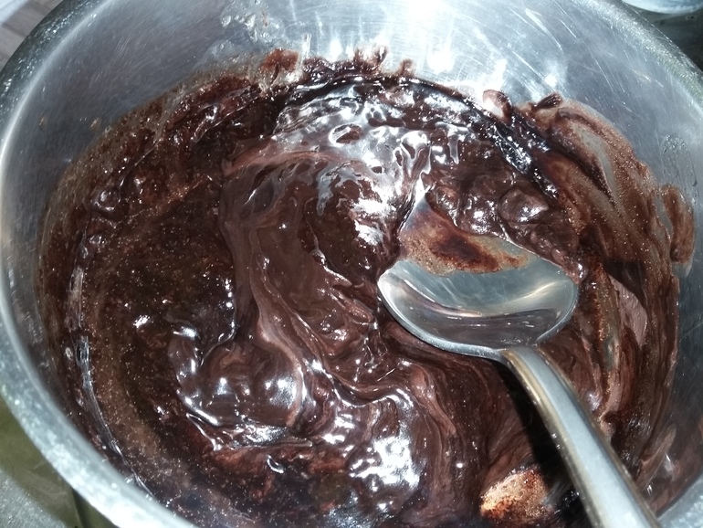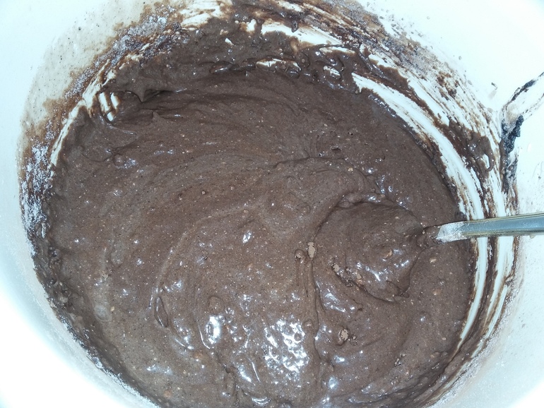 Остудить немного и добавить к тесту. Перемешать до однородности: