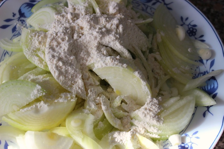 Лук посыпаем мукой: