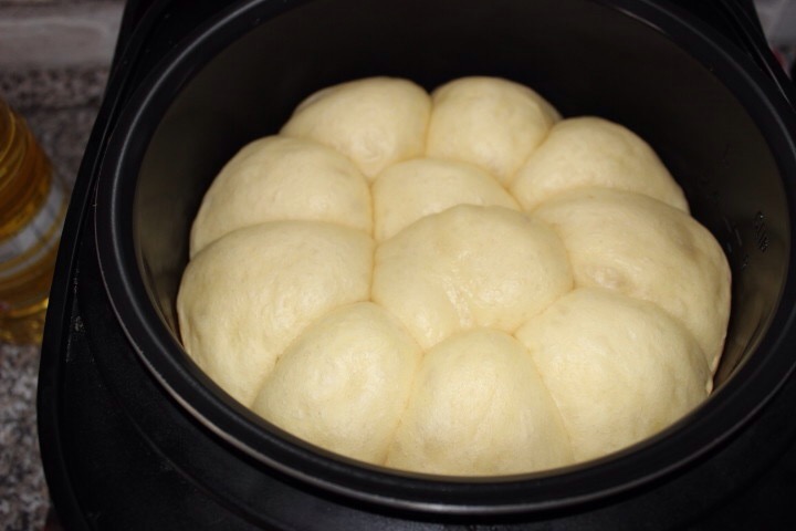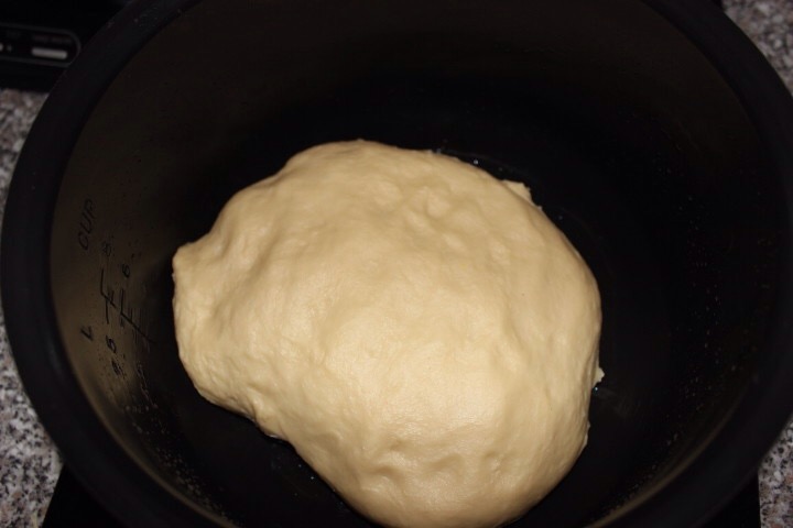 Теперь тесту нужен примерно час для подъёма, я оставляю его в мультиварке на программе мультиповар 35 градусов, тесто увеличивается в два раза.
