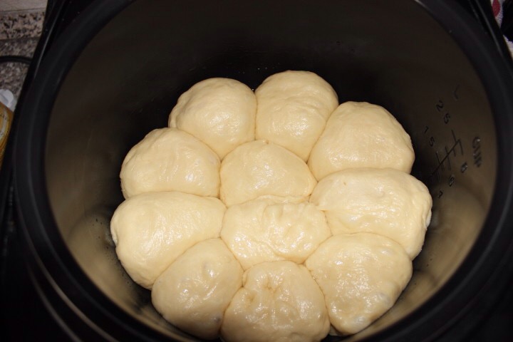 Укладываем их в мультиварке, оставляем на 15 минут на мультиповар 35 градусов, что бы они немного поднялись