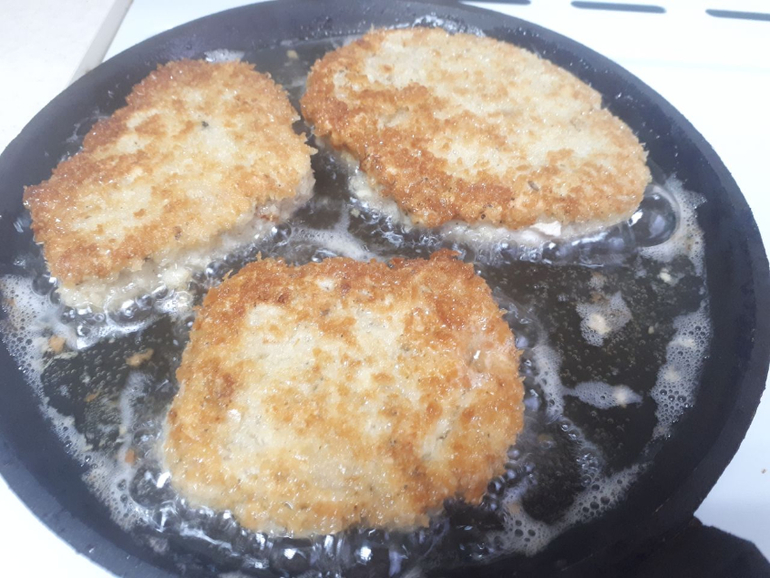 Раскалим масло на сковороде и обжариваем в течение 3-4 минут с каждой стороны. Я на второй стороне уменьшаю огонь и жарю 4-5 мин.