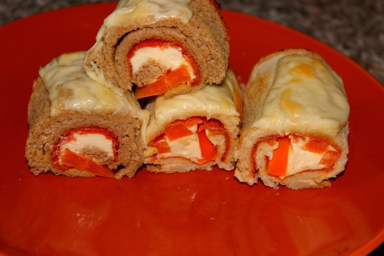Отправляем в духовку на 200 градусов 5-10 минут. Смотрите, что бы хлеб стал хрустящий, но при этом не вытекла начинка. Или в микроволновку на 2- 3 минуты, тоже условие, что бы не успела вытечь начинка.