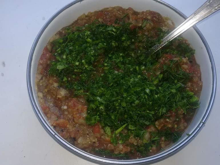 Дальше ножом все мелко рубится, солится, перчится, перемешивается.