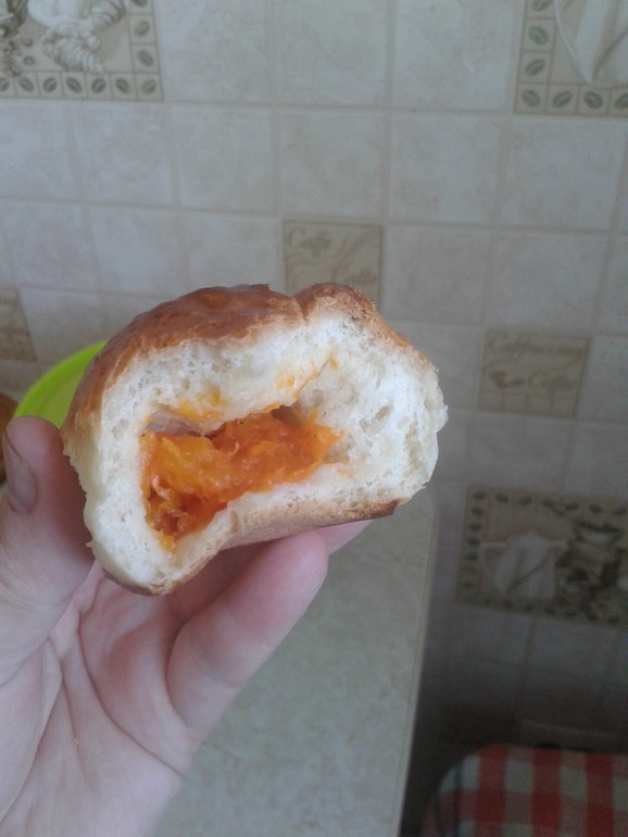 Пироги, пирожки, булочкиВ этом году тыква выросла разная:сочная и сухая,сладкая и не очень))) Вкусную мы запекали с сахаром духовке,а невкусную частично заморозили,а из остатков свежей делаем вот такие вкусные пирожки)))) Аромат при их выпечке стоИт на кухне просто обалденный)))