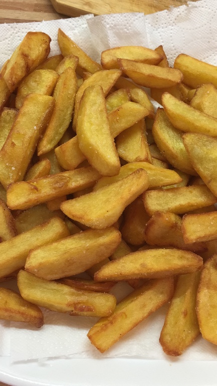 Вынуть и выложить на салфетки, чтобы впиталось лишнее масло. Картофель должен остыть до комнатной температуры.