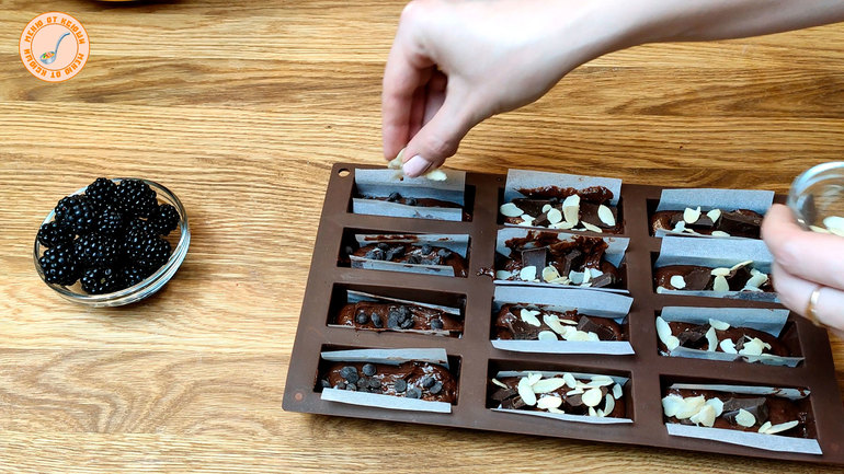 Шаг 4 Отсаживаем маффины, добавляем кусочки шоколада. Выпекаем при температуре 180 градусов 20 минут