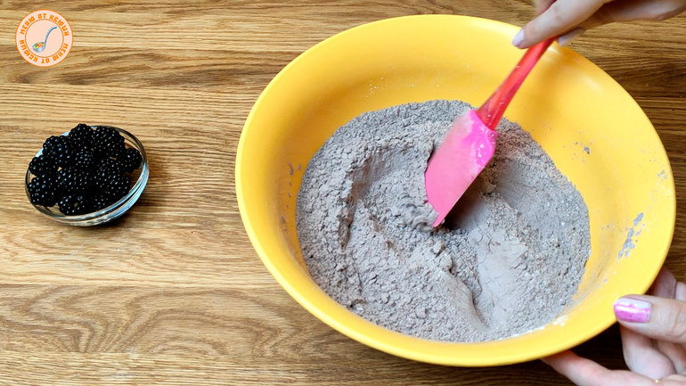 Шаг 1 В муку добавляем разрыхлитель и какао. Перемешиваем.