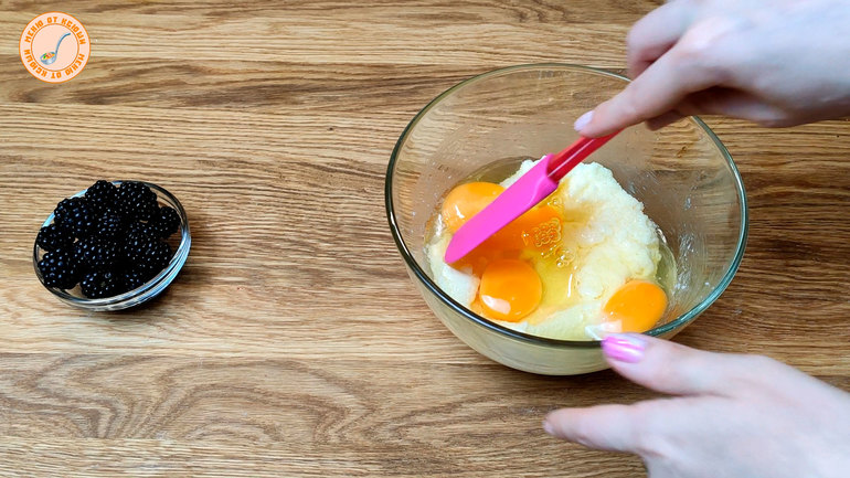 Шаг 3 В сухую смесь вливаем жидкую. Замешиваем тесто.