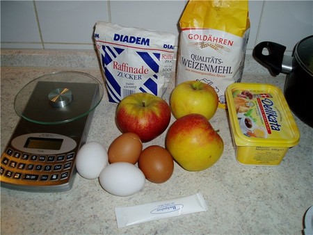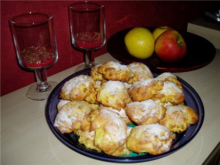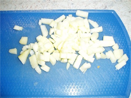 Яблоки чистим и режем мелкими кубиками,добавляем в тесто.