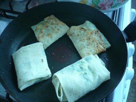 может,кому пригодится рецепт быстрой и вкусной закуски,которая идет и в горячем и в холодном виде.честно сказать, лук как таковой я не люблю.но в таком виде он, правда, на удивление вкусен.итак, берем лист армянского тонкого лаваша и разрезаем его на 4 части (я делала на скорую руку,большими конвертами, если постараться,можно сделать их поаккуратней).на каждый пласт лаваша выкладываем начинку из порубленного яйца, зеленого лука и соли по вкусу.заворачиваем конверт и кладем его на разогретую сковороду с подсолнечным маслом швом вниз.