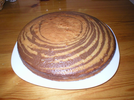 Теперь выкладываем тесто. Сначала на середину положить белое тесто (примерно по 2 ст.л.), затем коричневое и т.д.