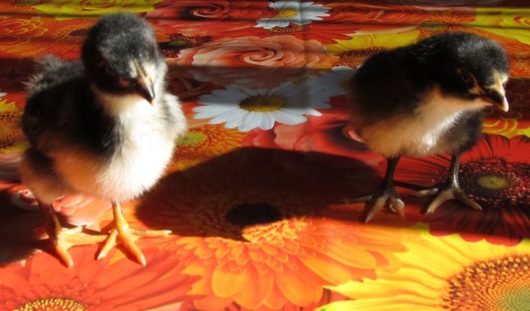 Так эту парочку назвал сын, потому что высиживала их ....индоутка :). На фото цыпам неделя от роду.
