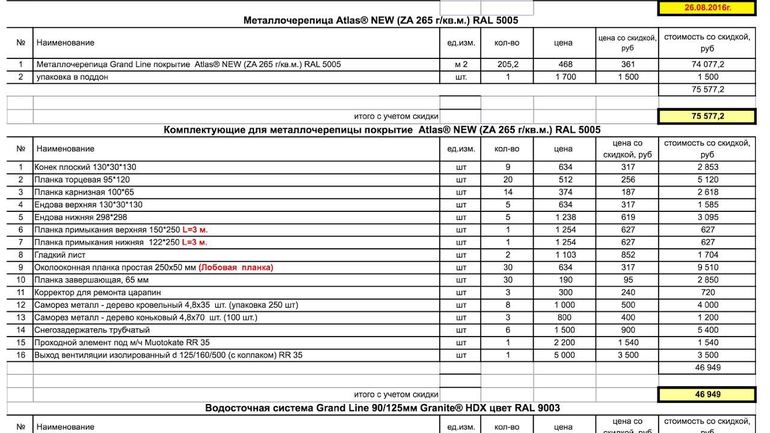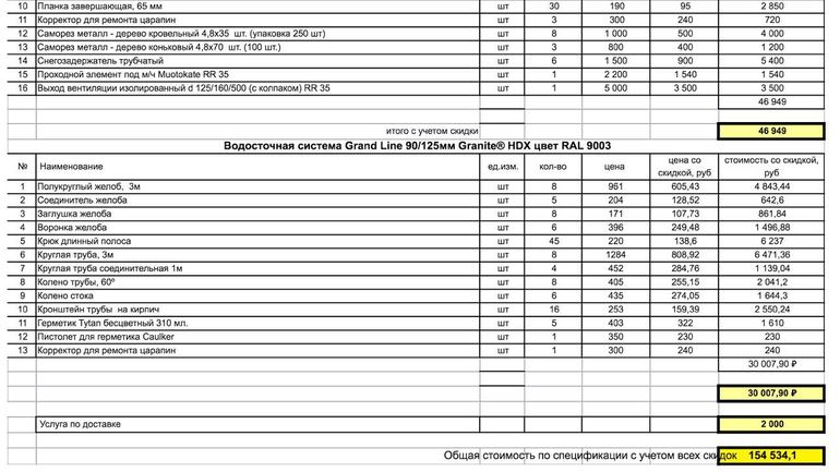 Прислали расчёт с водосточкой и СКИДКОЙ на 150тр