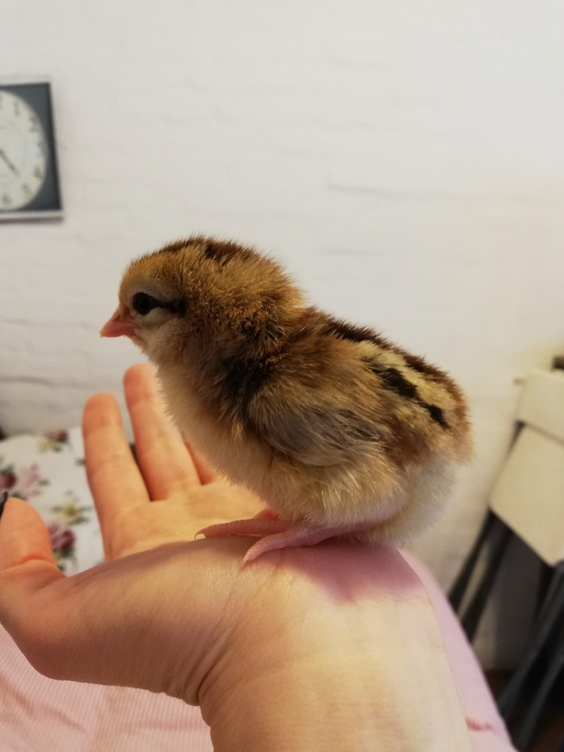 Первую неделю кормила кашами, вареными яйцами и прочими вкусняшками. Вставала и ночью и днем каждые два часа им подсыпали. Потом полегче пошло. Они стали лопать комбикорм с удовольствием, сыпешь и делов то. Только воду на чистую все равно часто менять надо. Они так роют сильно опилки, что все засыпают....