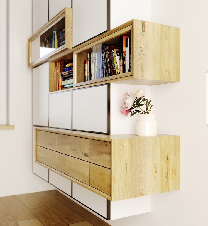 Беспокоят книги на окне. Хотела делать шкаф который планировали до рождения детей. И ставить его по стене между окном и комодом. Комод пока мелкие останется, потом переедет в детскую спальню. Шкаф который планировали имеет много углов, точнее он навесной (40 см от пола) и есть выступающие детали планка 5 см. И.е. ребенок всегда ее будет , она на высоте 90 см от пола, типа полочка для мелочей. Или перепланировать шкаф?