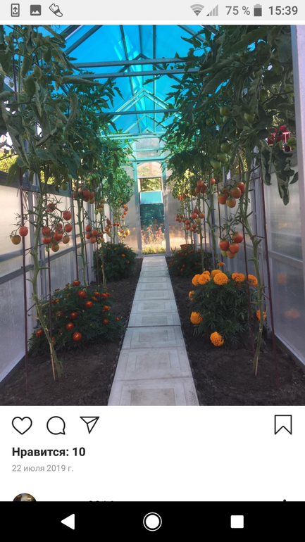 Интересно, какого размера теплица, просто у нас тоже по центру дорожка, и теплица вся под высокорослые помидоры, но у нас они в три ряда, в шахматном порядке)кстати, у меня был опыт посадки бархатцев в теплицах. В помидорной они были как на ваших фото, в огуречной, хиленькие кустецы)