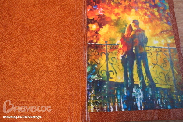 Подбираем цвет под родной цвет обложки и губкой красим края обложки. Если родной цвет обложки не подходит по цветовой гамме под вашу картинку - красить краешки обложки нужно и внутри.