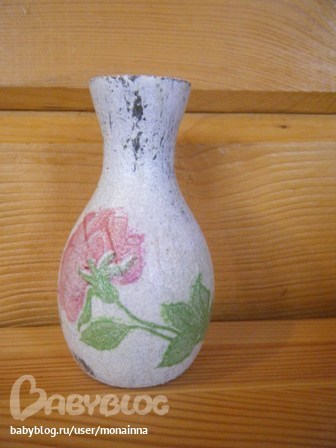 покрасила бел краской, потом слой коричневого цвета, свеча, белый акрил, цветы, оч постаралась тени добавить, шкурка, лак