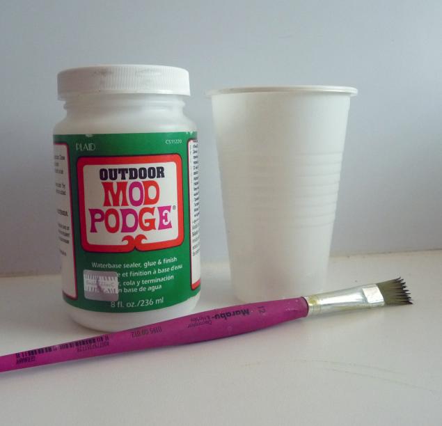 - Разведите обычный клей ПВА с водой в соотношении . Приложите декупажный орнамент к поверхности и тщательно промажьте кистью всю поверхность рисунка. Затем с нажимом проведите пальцами по орнаменту, сглаживая все заломы и пузыри. При необходимости повторите процедуру дважды. Кисть желательно использовать плоскую и жесткую. Очисть кисть по завершении работы можно растворителем.