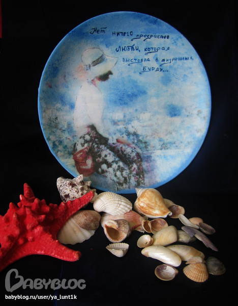 Я доделала свою тарелочку=)Прошу прощение,что так долго.Выходные были заняты.А в будни работаю.Времени вообще нет=(Где бы его преобрести=))Может знаете такой магазинчик?