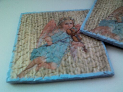 зашкурила основу, загрунтовала,зашкурила,скорлупу отделила от пленки,приклеяла скорлупу ПВА,покрасила белой акриловой краской, приклеяла мотив, просушила, покрыла несколькими слоями лака, зашкурила,сделала окантовку, и покрыла несколкими слоями лака