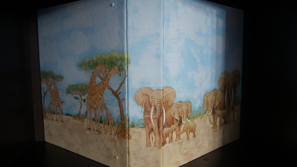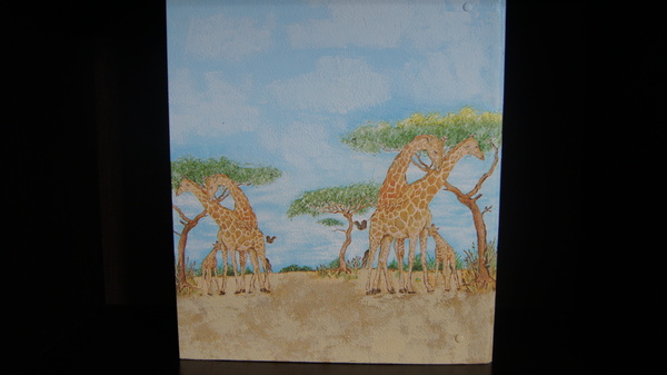 Грунтовка в три слоя, шкурила. Нанесла мотивы методом файла, нанесла ПВА. Просушка. зачпокала небо и землю. Дорисовала копыта, травку, чуть деревья подрисовывала. Пошкурила немного. Покрыла матовым лаком.