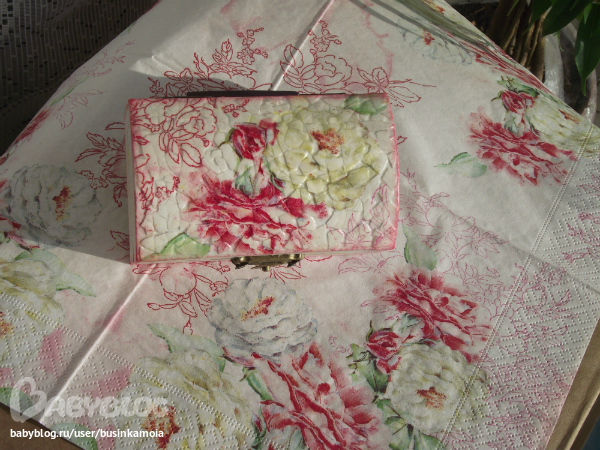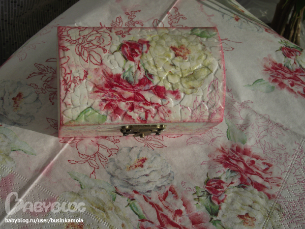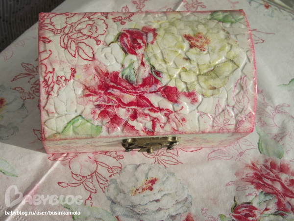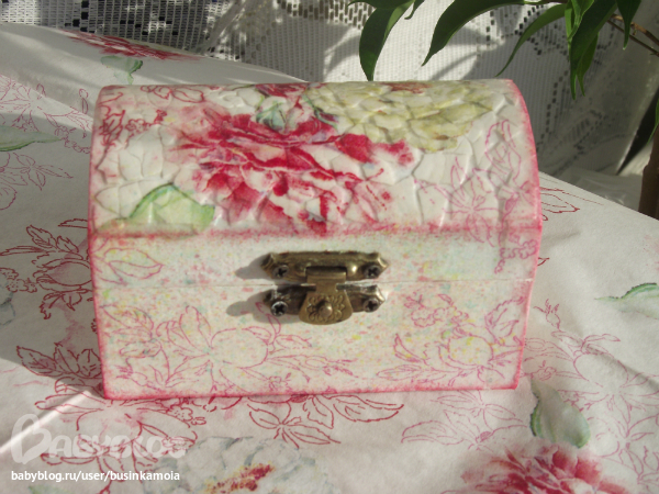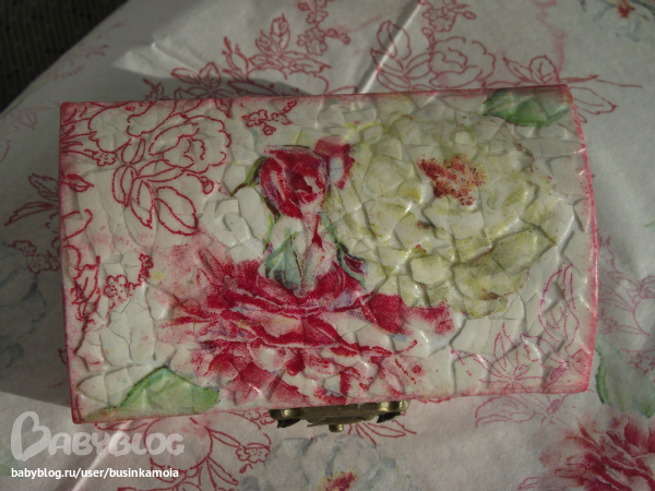 если честно, то очень подмывало сделать потёртости или кракелюр, но так как нельзя забегать вперёд то сделала брызги...