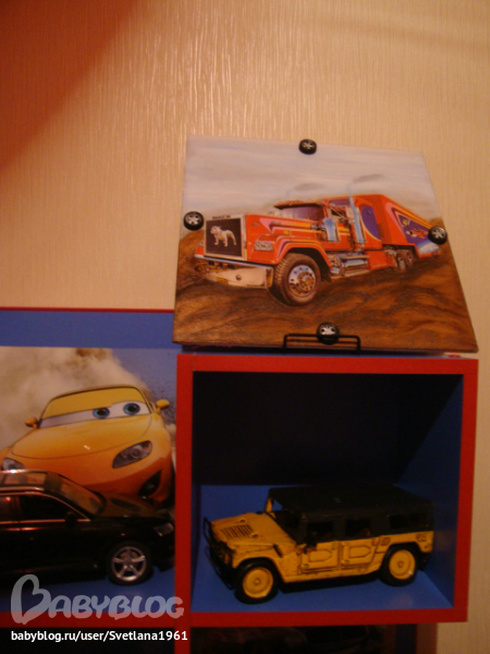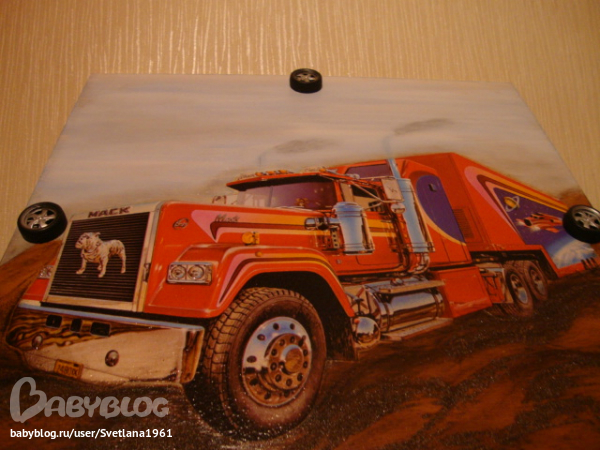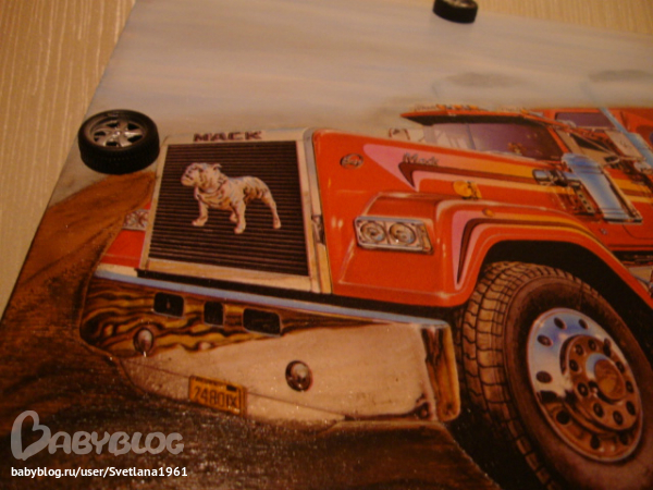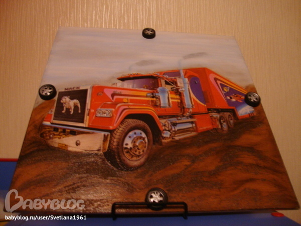 Архив работ к урокамК этому уроку сделала часы в комнату для ребенка. Кусок фанеры, рисунок из обоев и рисовала фон.Небо-голубой и белой, земля коричневой и терракотовой. Фары выделила объемным гелем. На земле для объема манная крупа, тонированная пастелью, вместо цифр-колеса от поломанных машинок.Извиняюсь, стрелки пока не прикручены, этим занимается муж., но это уже к худ. декупажу не имеет отношения. Вот, вообщем, из того, что было под рукой.
