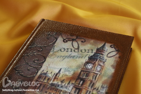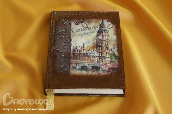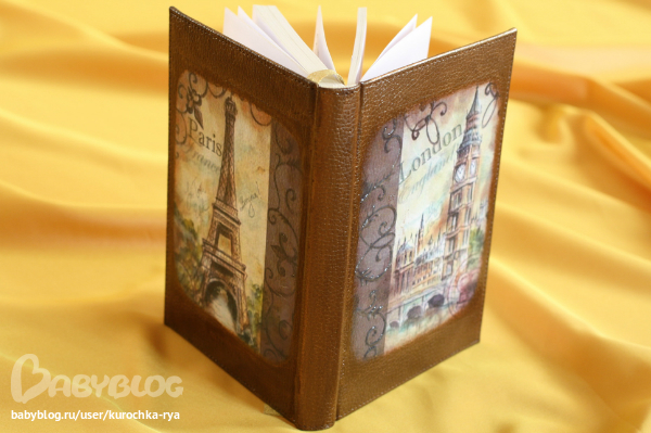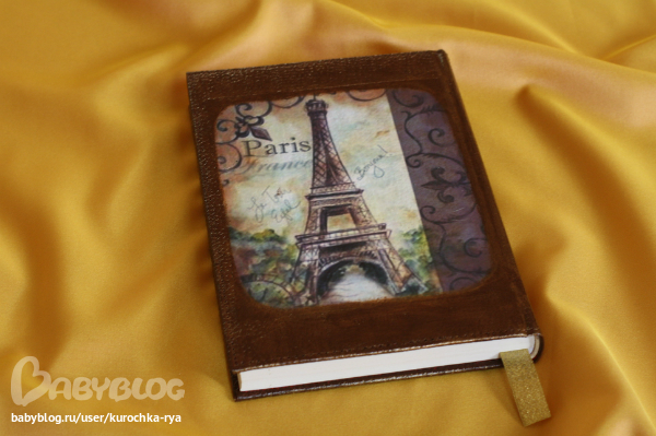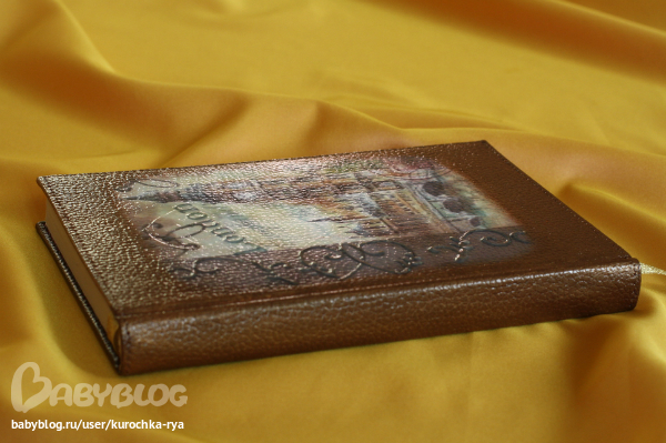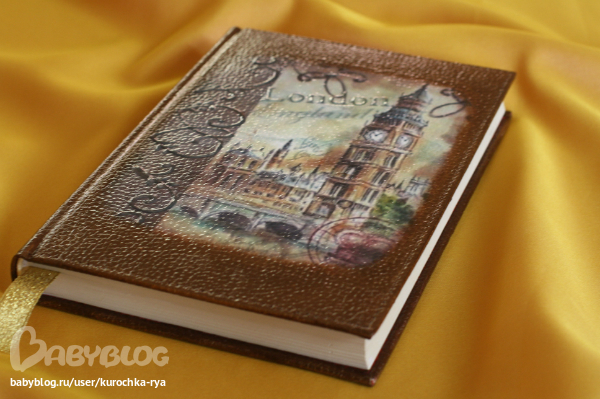 Распечатки истончила, приклеила с двух сторон, покрасила ежедневник умброй натуральной и золотом