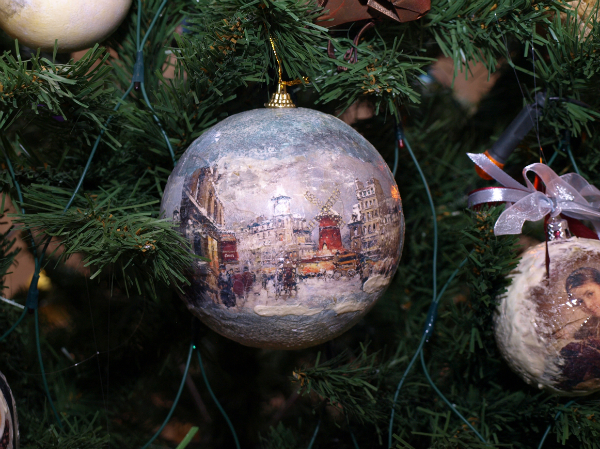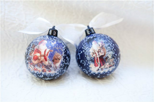 На Руси первые ёлочные игрушки делали из тряпок, соломы, цветных ленточек, а уже позднее из бумаги и фольги. Этим производством занимались специальные картонажные мастерские. Стеклянные украшения появились позднее.