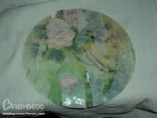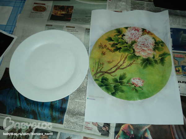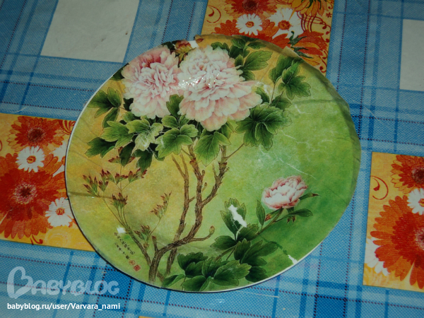 Посоветуйте! (обсуждаем черновые работы)Уже пора спать, а я решила попробовать приклеить мотивчик к тарелочке!!! горе мне горе...чуть не плачу!