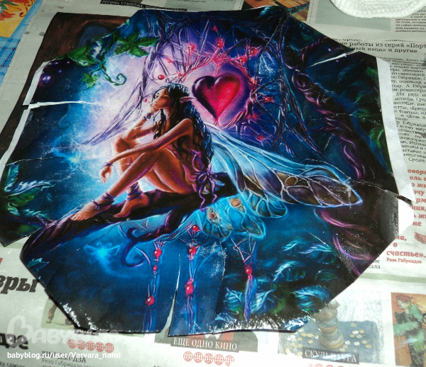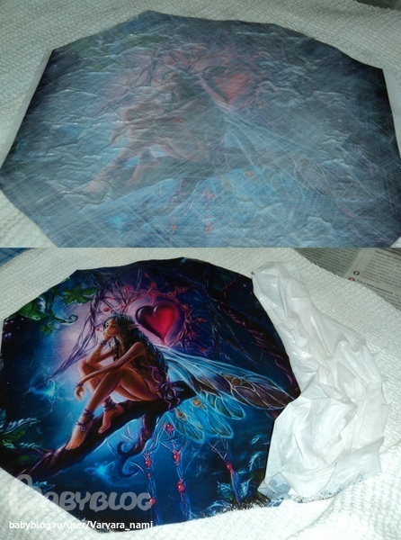 после просушки, образовались воздушные пузыри, несколько раз заново мочила клеем и разгоняла, иголкой прокалывала, но они заново вылезают((