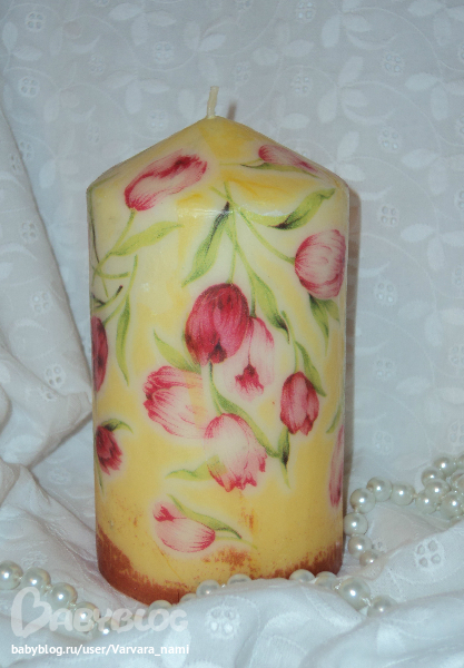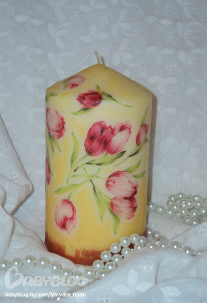 + свеча с тюльпанами потребовала больше времени за счет продолжения рисунка сверху