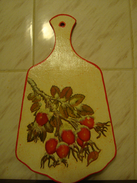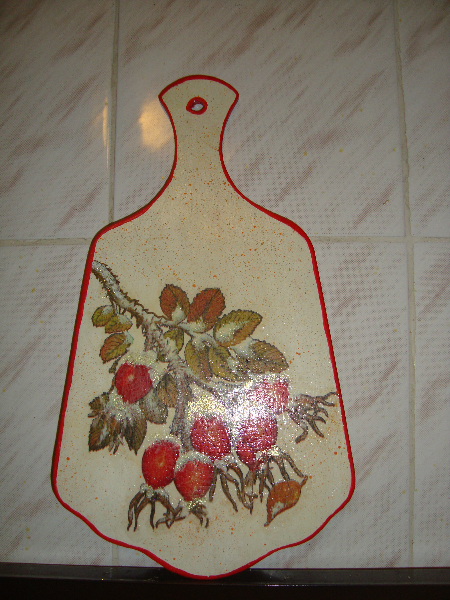 3. Выбрала мотив, к нему подобрала фон. Им покрыла досточку дважды.