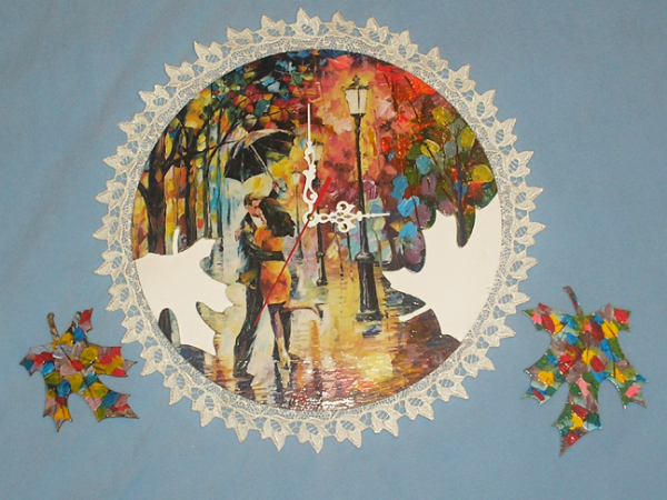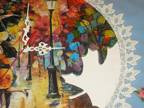 5. Приклеила картон под промежутки листочков и кружева по периметру