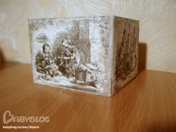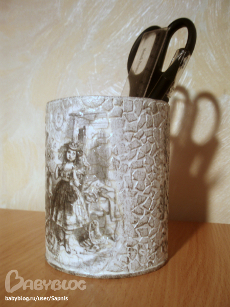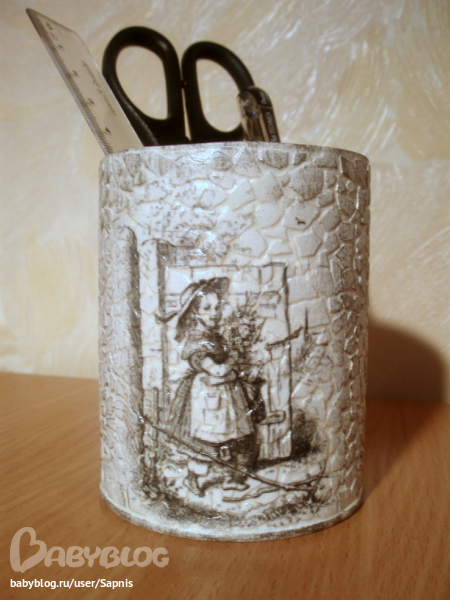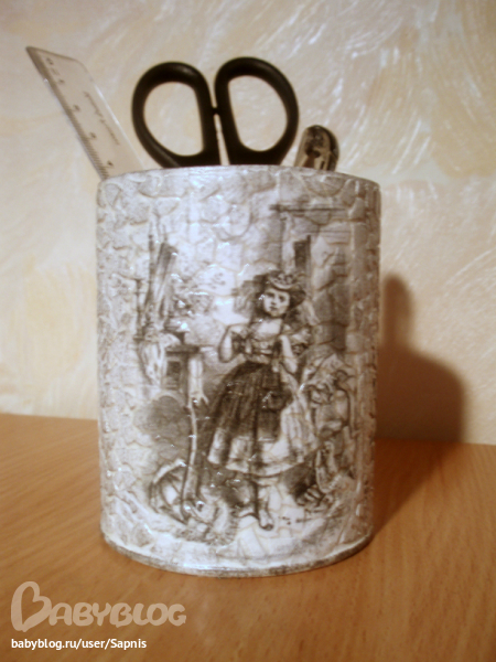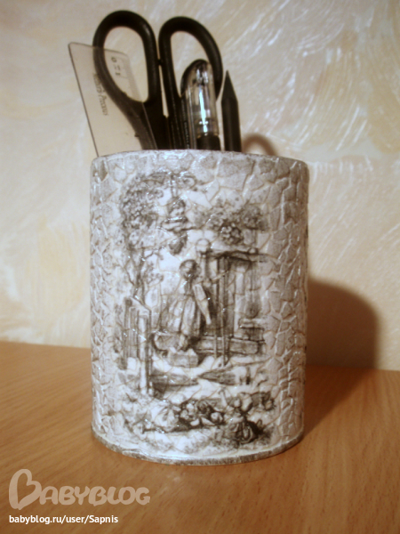 - наклеила/вбила распечатки на поверхность стаканчика и подставки, после просушки пролачила 2 или 3 раза с просушкой каждого слоя
