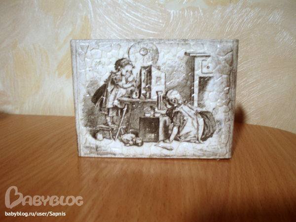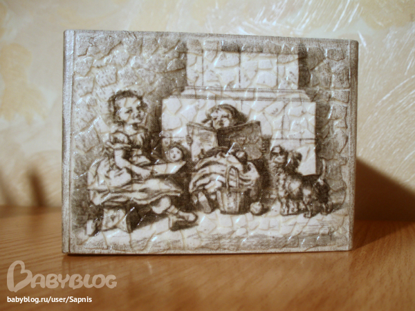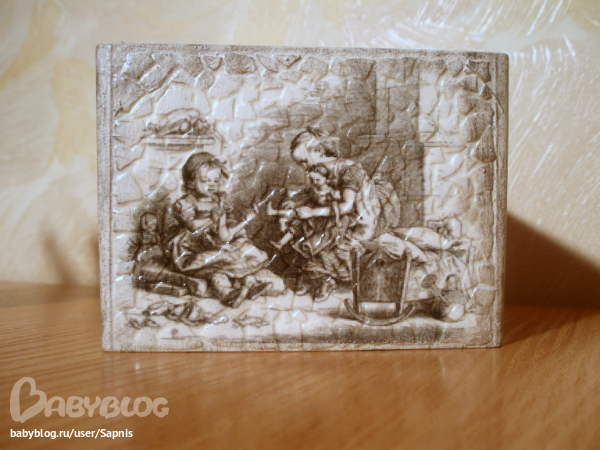 - покрасила фон в незакрытых распечаткой местах - красила светло-светло-серым, просушила и пролачила несколько раз с просушкой каждого слоя