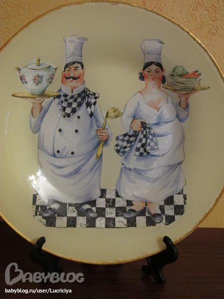 2) Вырезала мотив. Приклеила его на обратную сторону тарелки.