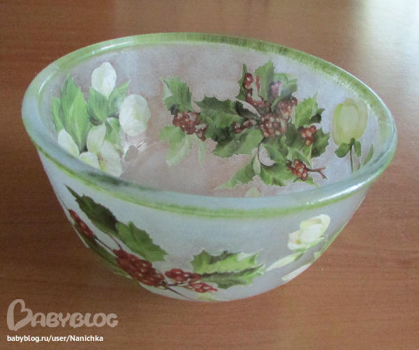 У меня вот еще два вопроса есть - 1) может быть ты сможешь подсказать еще какие-то подобные средства, которые эффект матового стекла дают? и 2) можно поверх покрыть обычным матовым лаком, чтобы салатник не блестел, а стал матовым и потом использовать его по назначению или не стоит? (заранее прошу прощения, если не в той теме вопросы задаю, что-то я сообразить не смогла где их написать можно)