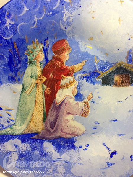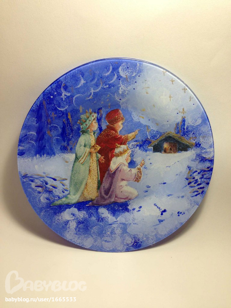 Пока переделывала елочку, подсохла моя третяя тарелка..., я знаю, да, что лучше не распыляться, а делать одну работу, но качественно, НО очень понравилась картинка. Было понятно, что рисунок не из легких, что почти всю тарелку надо подрисовывать, очень боялась браться за нее, НО.... судите сами, что получилось, я вижу много косяков. Т.к. я не умею рисовать, то для меня это достижение.