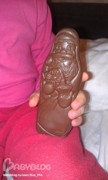 Ну а нашей Анютке: паззлы (ооочень понравились нам всем), печатки, резиночки, браслетик, шоколадки и вот этого милого Деда Мороза (к сожалению, обертка до фотосессии не дожила).