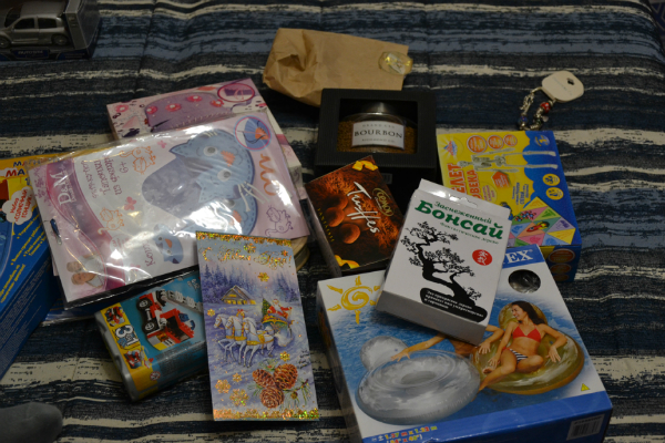 А это 6, 5 кг счастья от Наташи и Альбины!!! Сдеражать напор было уже сложнее!!! Все просто суперское!!! Даже нет слов!!! Муж смеялся с Наташиной фразы "Открытку можно использовать для декупажа", говорит, вот вы фанаты :)))) Обязательно сделаю бутылку на новогодний стол !!!!!