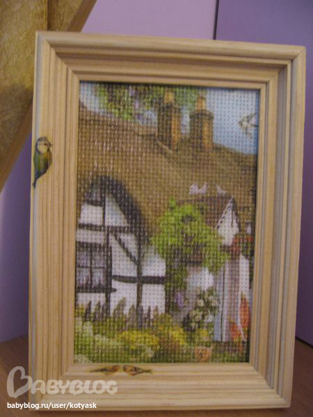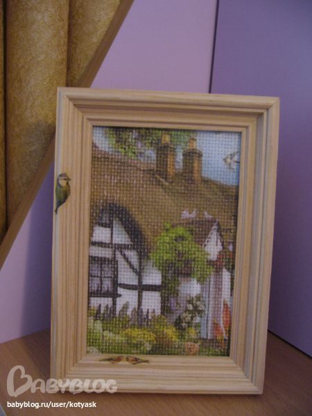 На счет рамочки... я бы сошкурила пИтИчек аккуратно, т.к. они, честно говоря, не много не в тему, в том плане "болтаются они в воздухе"... может если дорисовать к ним веточки... не знаю. Так вот-сошкурила бы и просто рамочку обработала морилкой, а потом морилку можно чуть пошкурить, получатся потертости и мне кажется очень ничего было бы)
