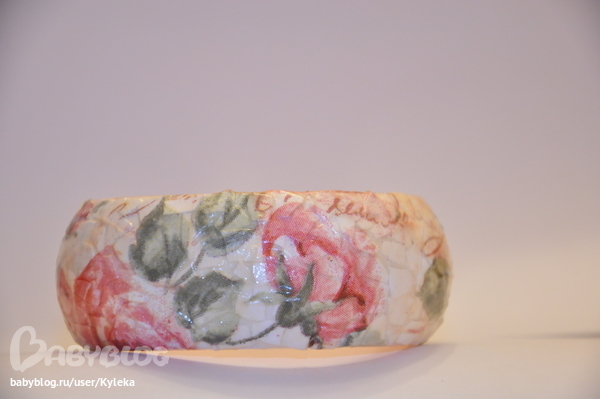 красиво получилось! тоже браслет пытать хотела сначала, загрунтовала и закрасила его, а салфетку так и не подобрала, лежит ждет теперь своего часа)