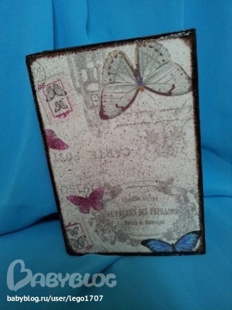 Архив работ к урокамХод работы: Шкурка и грунт, наклеила мотивы, покрыла 2 слоями лака, просушила, опять шкурка, лак, набрызги и кант, и еще 5 слоев лака.