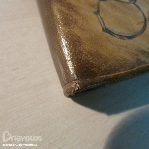 Сделала мужу обложку для электронной книги. Пошкурила, обезжирила, загрунтовала грунтовкой Primer Stamperia (такая, которая была в мастер-классе по декупажу на металле - на ней написано, что можно использовать для металла и других поверхностей). Приклеила мотивы на ПВА - декупажная карта и элементы салфетки. На сгибы мотивы не клеила. Все покрыла лаком, акриловыми красками сделала фон, на сгибе тоже красила только красками. Покрыла снова лаком Олимп для бань и саун (делала уже с этим лаком обложку на паспорт - все было нормально). Сверху покрыла двумя слоями стекловидного лака Ferrario. Но буквально через 3 дня краска на сгибах по краям обложки потрескалась так, что виден стал первоначальный цвет кожи. Почему так могло произойти? Что я сделала неправильно? Помогите, пожалуйста, очень жалко обложку и муж расстроился.