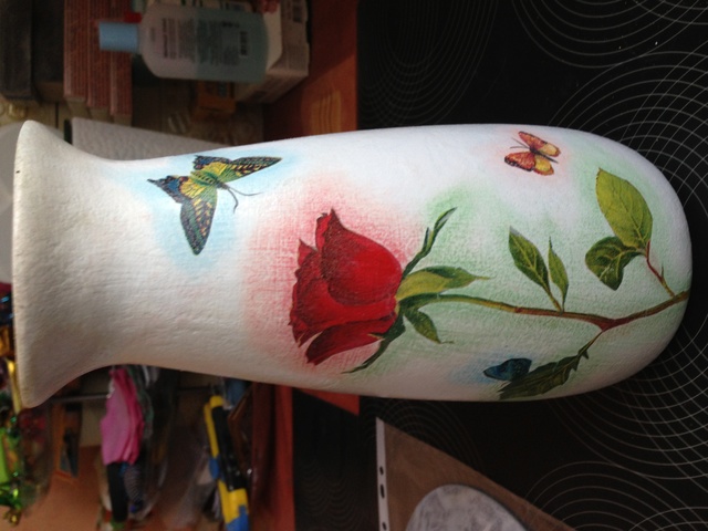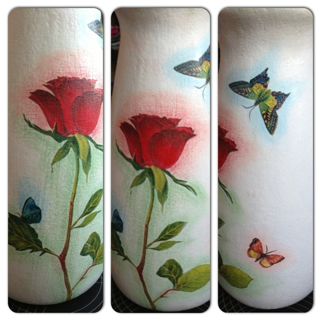 Посоветуйте! (обсуждаем черновые работы)Извините что две фото сразу, пишу с телефона. Еще одна попытка по этому уроку. Закрасила большую бабочку белой акриловой краской. Вырезала фрагменты из салфетки, приклеила пва, после высыхания пастелью вокруг рисунка сделала дымку. НО мне не нравится((( подскажите, что нужно изменить? Спасибо!!! Бедная моя ваза(((