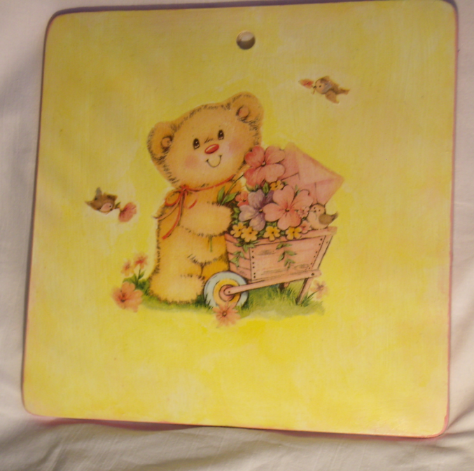 6.Как подсохли,убрала немного наждачкой неровности,пошкурила края салфетки,где медведь.