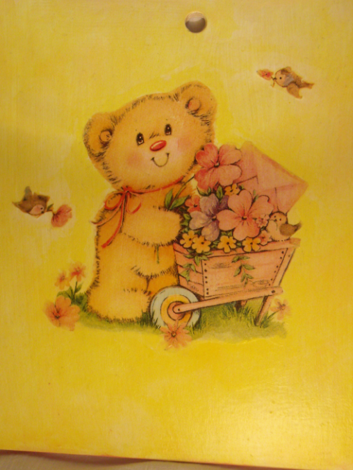 7.Вокруг медведя прошлась жёлтой краской,чтобы не видны были края салфетки.