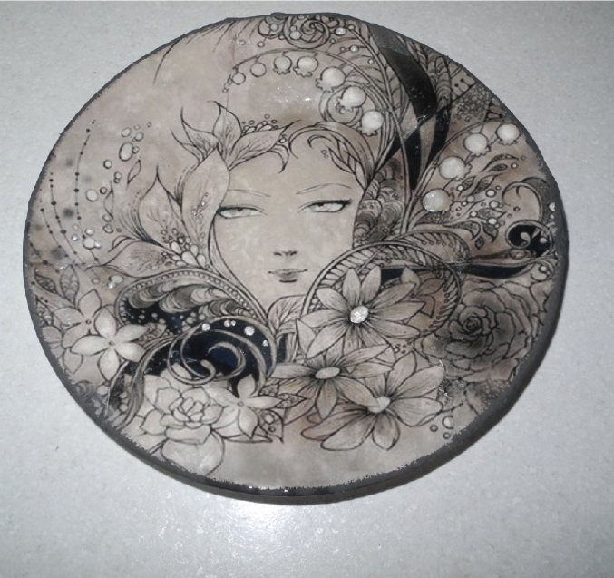 11. Сделала кант и покрыла всю тарелку 2-мя слоями лака.